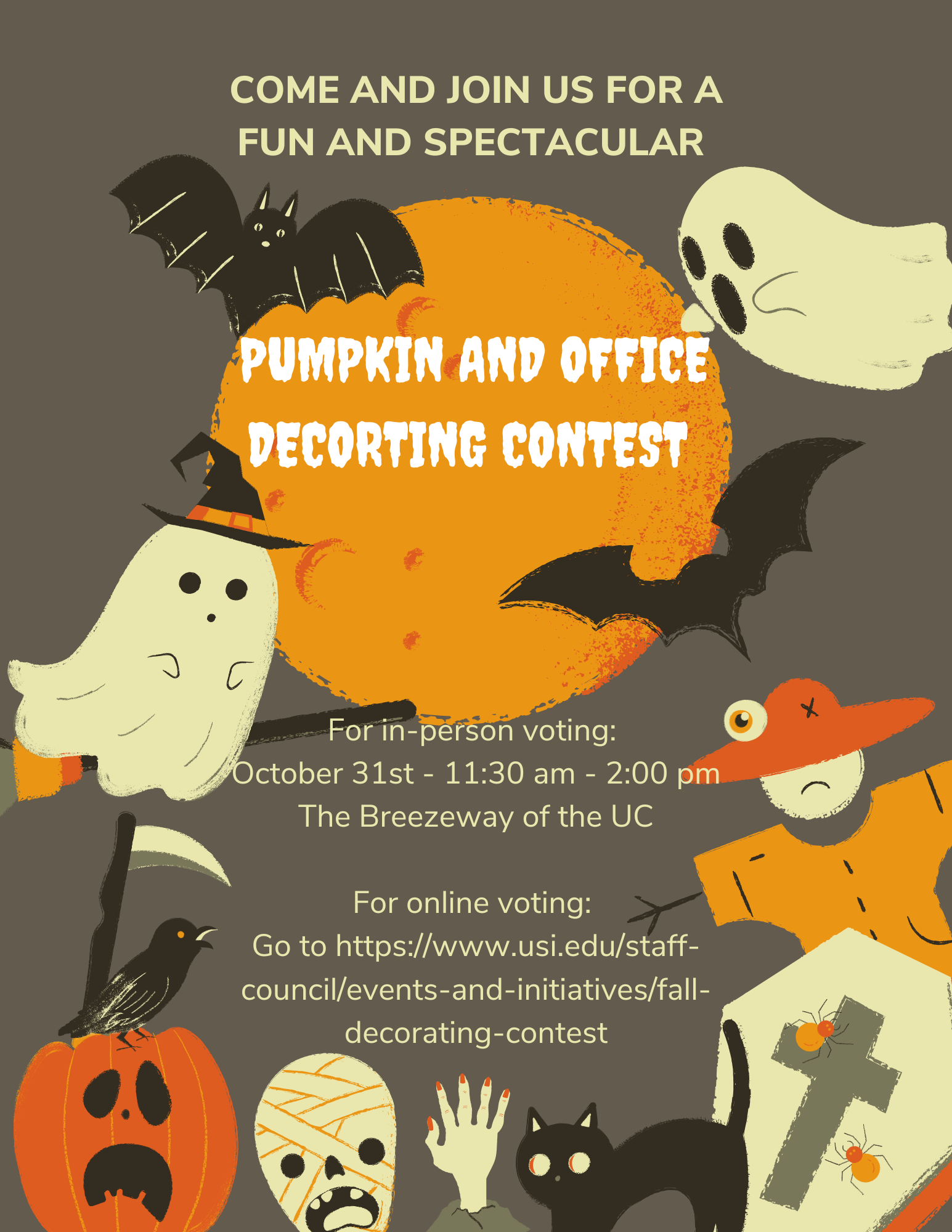 Get together your best spooky decorations and pumpkins for this year's annual Staff Council Fall Office and Pumpkin Decorating contests!