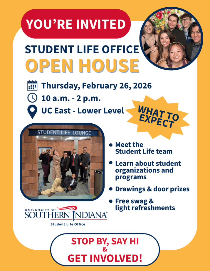 Come explore Student Life Office's new space, meet the team and learn how the staff supports student involvement, leadership development and campus engagement at USI.