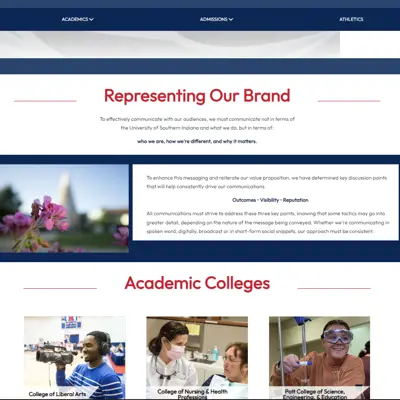 Over the past year, USI Content Marketing Specialists have interviewed faculty and leadership across campus to develop these helpful tools and will be expanding the offerings to include more facilities, programs and events. The Communication Framework will be updated regularly to keep data fresh and relevant and support the University Strategic Plan. The webpage is password protected, mobile friendly and allows PDF downloads of the one-page documents. If you have any questions regarding the website, the framework or the process to develop one, please reach out to the Content Marketing Specialist assigned to your area or Claire Bosma, Chief Marketing Officer, at c.bosma@usi.edu.