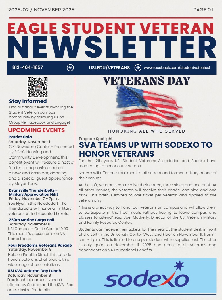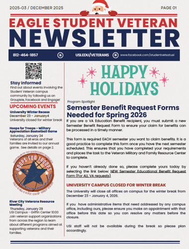 The University of Southern Indiana extends a warm welcome to all who have served or are currently serving our country as well as to the spouses and dependents of service members.